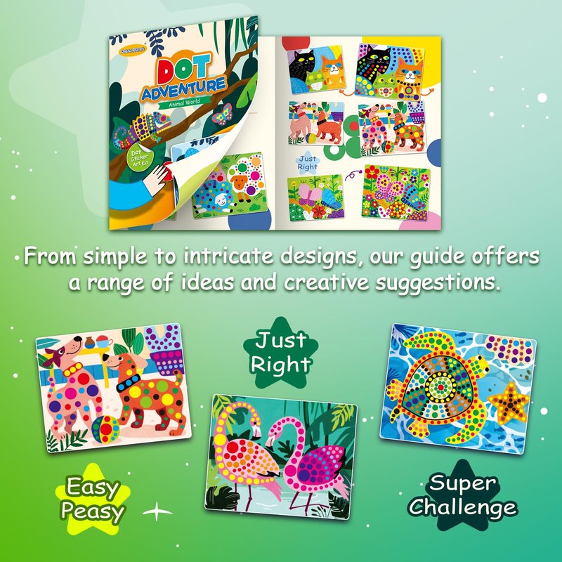 - Art Activity: Perfect for solo play, group projects, or as a fun activity during parties or playdates, our dot sticker art kit offers endless entertainment for kids.