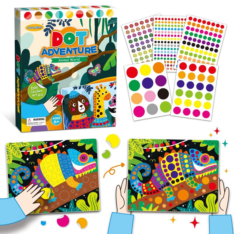 Drama Planet Dot Sticker Art Kit for Kids, Craft Captivating Animal Scenes with Dot Stickers, Includes Inspiration Guide, Craft Kits, Art Activities for Kids, Gift for Boys and Girls