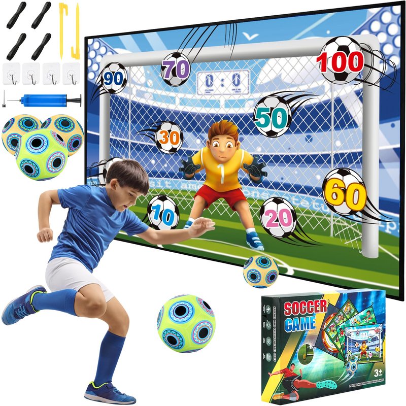 DRAMATION Soccer Ball Games for Kids, Soccer Goal Game with 3 Inflatable Velcro Balls, Indoor and Outdoor Backyard Games Toys for Ages 5-7 8-12, Soccer Gifts for 3 4 5 6 7 8 Year Old Boy Toys