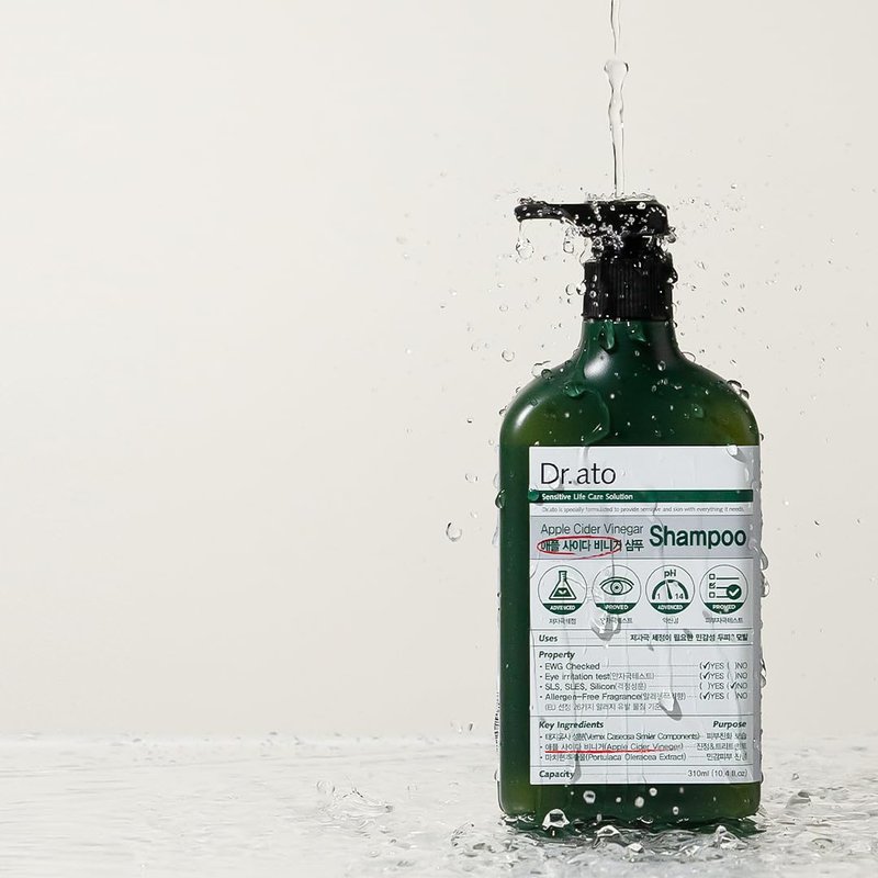 Dr.ato Apple Cider Vinegar Shampoo - pH5.5 Hypoallergenic Hair Shampoo with AHA in Apple - Skin and Eye Irritation Tested - All Safe Ingredients, Allegen-Free, Paraben Free, 10.5 fl.oz