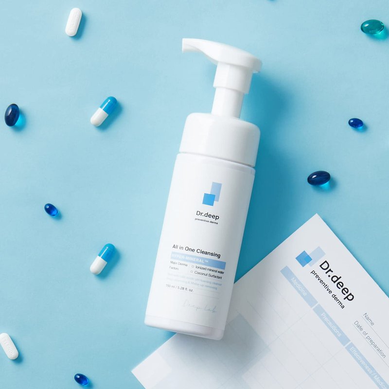 Dr.Deep All In One Cleansing(5.07 fl.oz) facial cleanser, deep cleansing foam,moisturizing,clear pores on oily, dry & sensitive skin with natural ingredients,make up remover