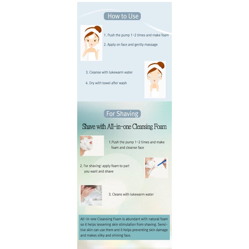 More convenient and efficient than normal cleansers which require vigorous rubbing to make a foam, because the All-in-One cleanser comes out like hair mousse.