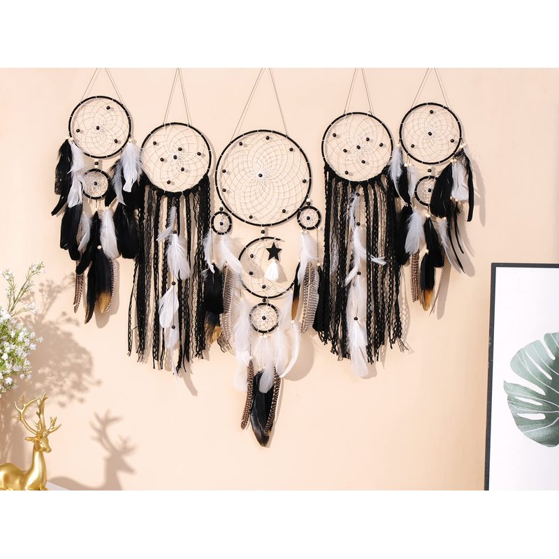 - Dream Catchers: Set of 5. Size:8"x28"/20x70cm(1 piece),6"x24"/15x60cm(2 piece),5"x20"13x50cm(2 piece).Dreamcatchers originated in the 18th century. Indians would use them to capture beautiful dreams and make nightmares disappear with the morning sun. They believe that the air at night is full of all kinds of dreams, and only dreamcatchers can Filter dreams and bring them into a beautiful dreamland.