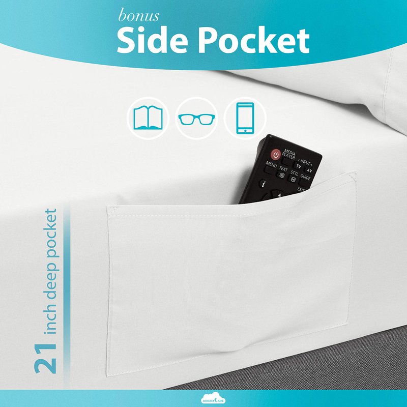 - ✔ BONUS SIDE POCKET LUXURY SHEET: On the side of the fitted sheet is a pocket perfect for storing your phone, a book, your glasses, or even the TV remote!