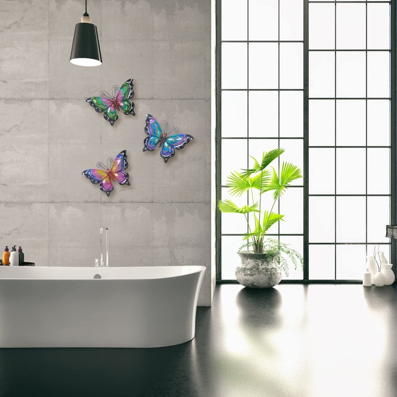 dreamskip 3 Pack Metal Butterfly Wall Art Outdoor Decor, Butterflies Spring Wall Sculpture Hanging Metal Wall Decorations for Garden, Patio, Fence, Yard, Living Room, Bedroom