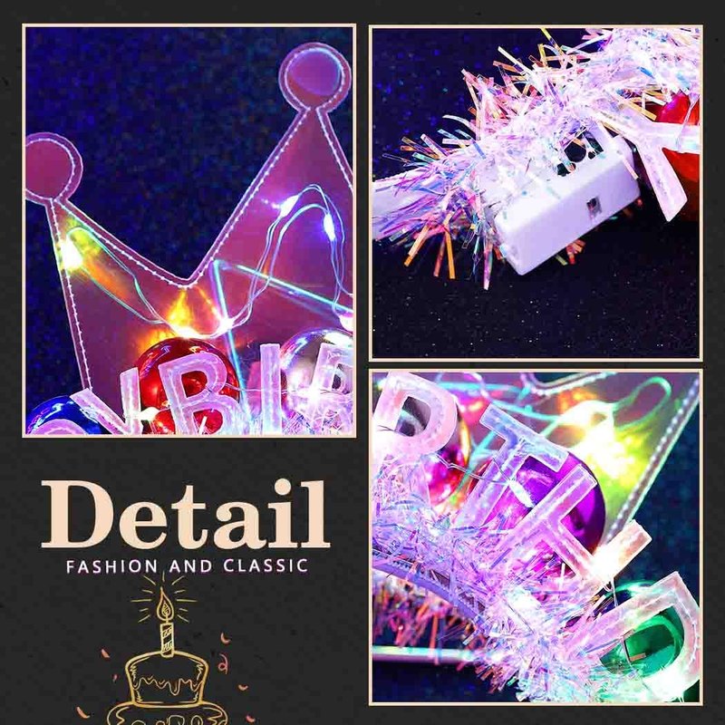 - Flashing birthday hair accessory creates an instant stunning new hair style for birthday, festival, holiday, party, photography, cosplay, concert, etc.