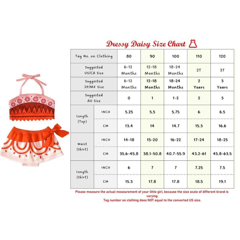- Size for toddler and kids girls: 6-12 months, 12-18 months, 18-24 months, 2T and 3T. Age is only an approximation of size. Please measure the actual body size and refer to the size chart to choose a proper size for best fit.