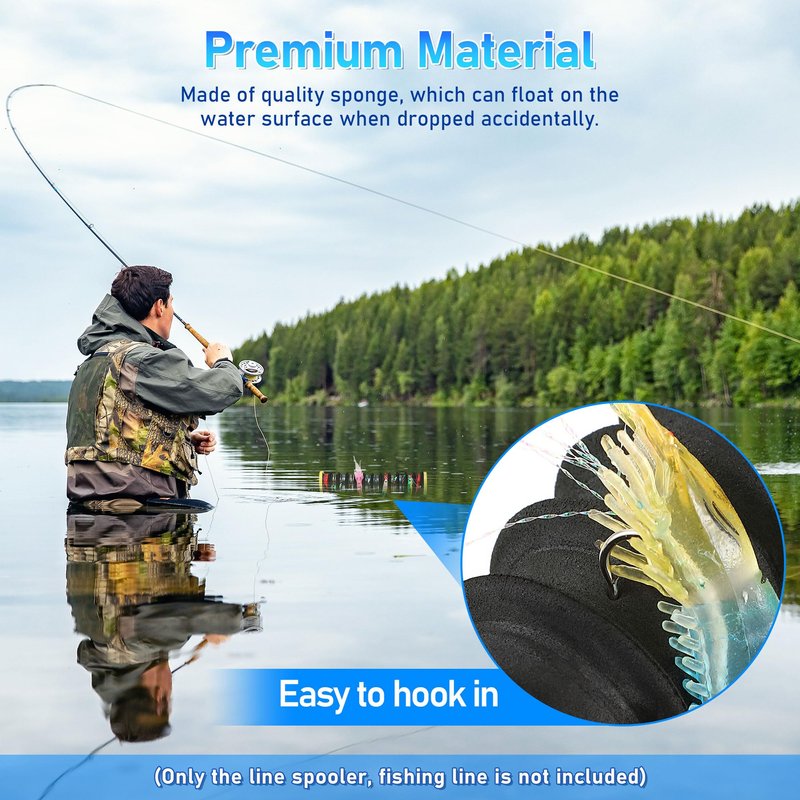 - [Convenient Design] this fishing line spooler is simple to use, with small slits in each slot that allow you to easily clamp the fishing line and quickly wind it up, tickle the hook into the sponge; Starting with the leader end and ending with the hook end, that way you can be sure to snug up the slack and not have extra leader material hanging about