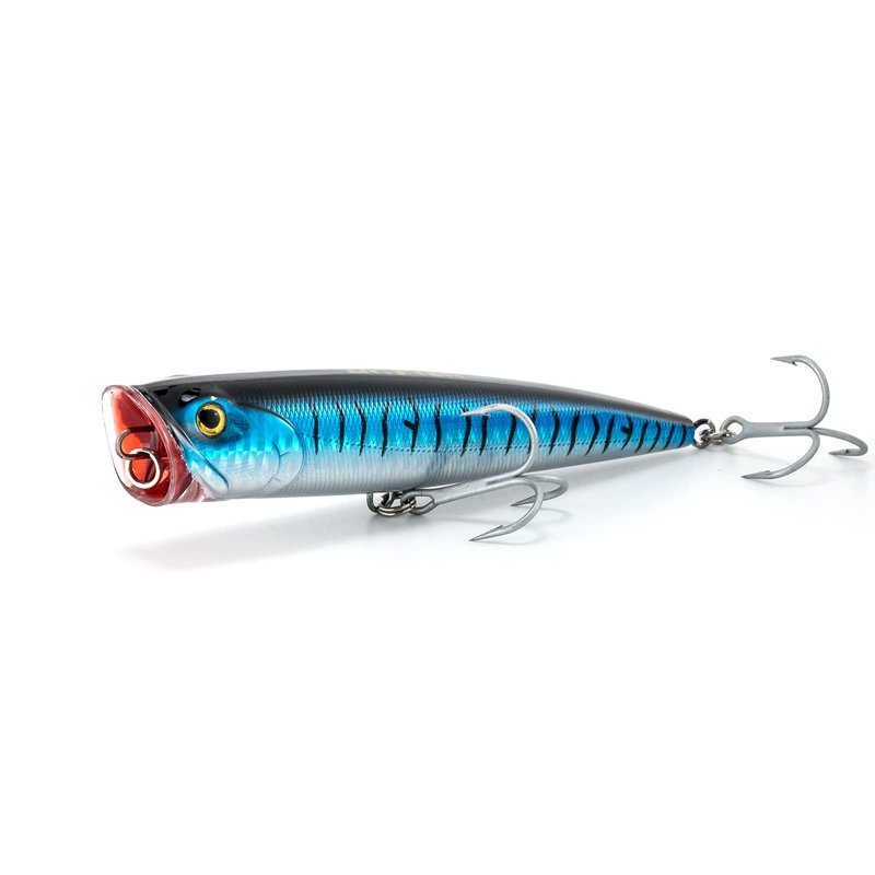 The Dr.Fish Topwater Popper is a formidable saltwater fishing lure, standing at 5-1/2 inches and weighing 1-2/5 ounces. Its incredibly realistic design, featuring 3D eyes, gill plates, scale pattern, and laser holographic painting, drives hungry fishes into a frenzy. With a classic popper shape and a new cup mouth design, this lure delivers an aggressive popping action, enticing more bites. The cup mouth, accompanied by steel balls, produces loud gurgling and rattling sounds, effectively calling out fishes from the depths. Armed with two razor-sharp VMC treble hooks and enhanced stainless steel split rings, this popper ensures a heightened hook-up percentage. The strengthened ABS material and steel wire-through body make it resilient against predator attacks. Designed with an internal smart weight-shift chamber and rattling balls, this popper allows for longer and more accurate casting. Whether you're targeting striper, pike, salmon, bass, or offshore species, the Dr.Fish Topwater Popper is a top-tier choice for exhilarating and successful saltwater fishing. Each pack includes 1 lure, providing a high-quality and effective addition to your tackle box.