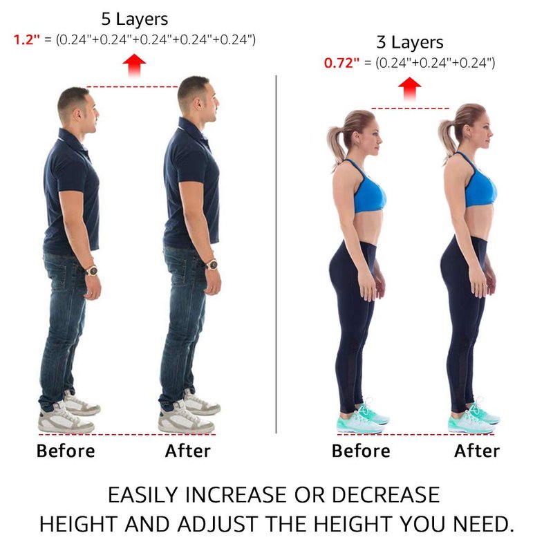 - 5-Layer Removable Design: Easily increase or decrease height and adjust the height you need. It helps adjust to improving posture due to leg length discrepancy.