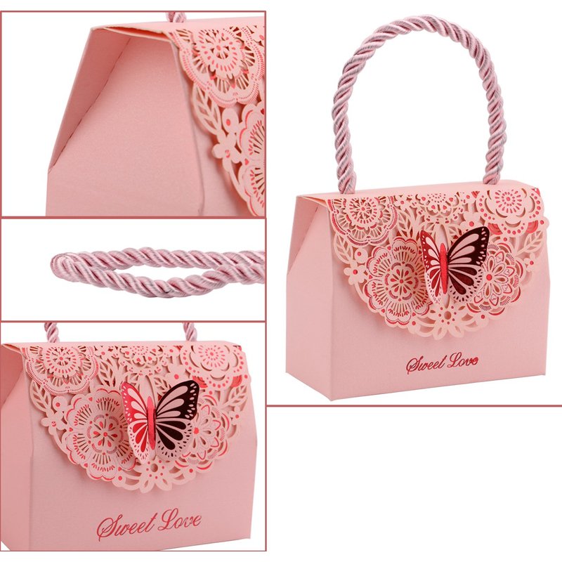 - FEATURES: Our gift box is handbag design, convenient to carry; stereoscopic butterfly closure; laser hollower flower pattern; easy to assemble; suitable for most occasions