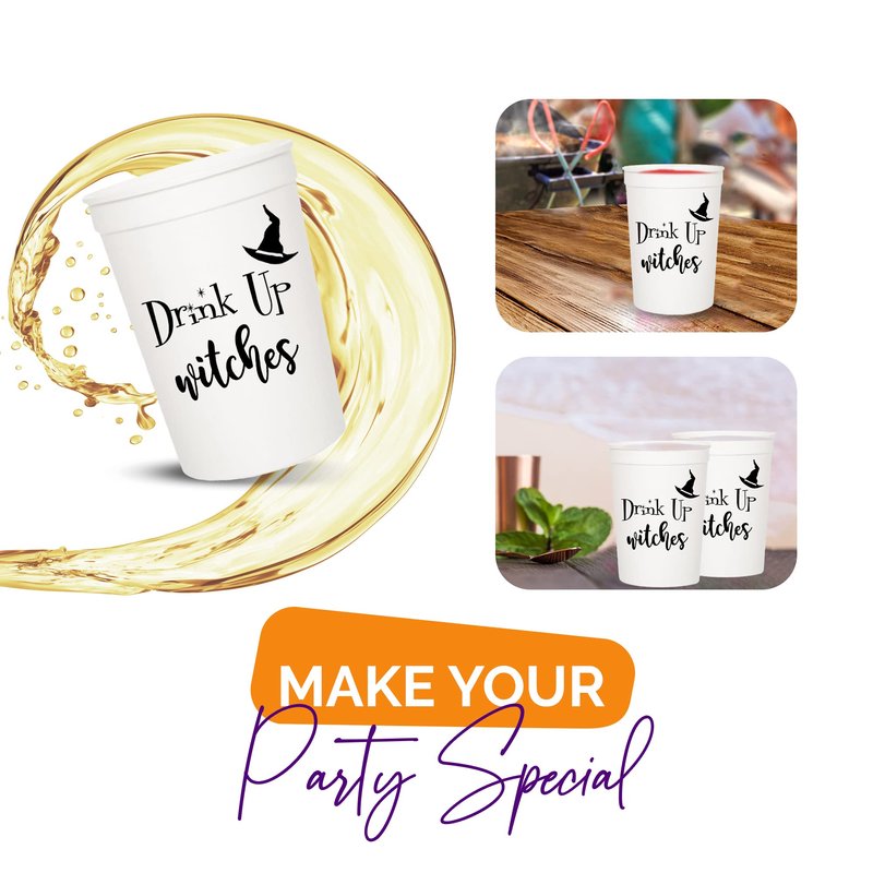 - PERFECT CHOICE- Each cup has a decorative "Drink Up Witches" On one side and "Happy Halloween" on the other!
