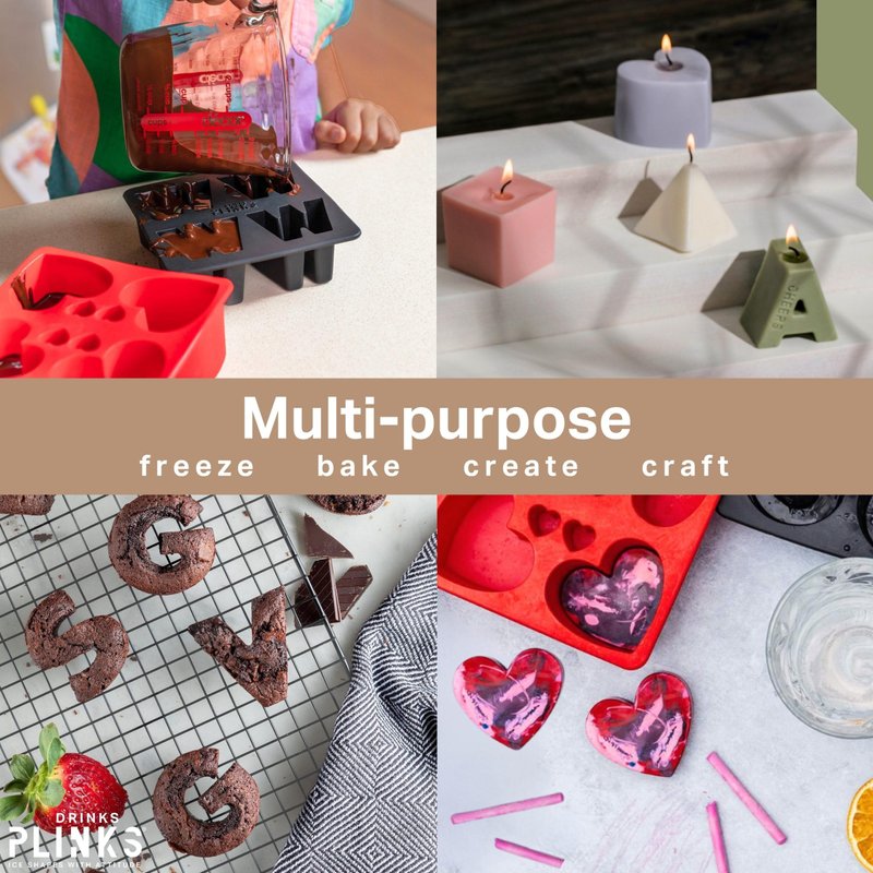 - VERSATILE KITCHEN TOOL: Not just for ice, but also perfect for baking, crafting, and more. Versatile, not just for ice, use it as a resin mold, candle mold, chocolate mold, or for any creative kitchen and crafting projects. Make craft ice by adding fruit and water before freezing. Make the bride and groom's initials with chocolate or fondant for the wedding cake or customize birthday cupcakes for the kids.