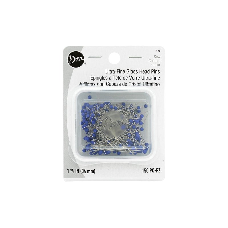 Dritz 172 Glass Head Pins, Ultra Fine, 1-3/8-Inch (150-Count) , Blue