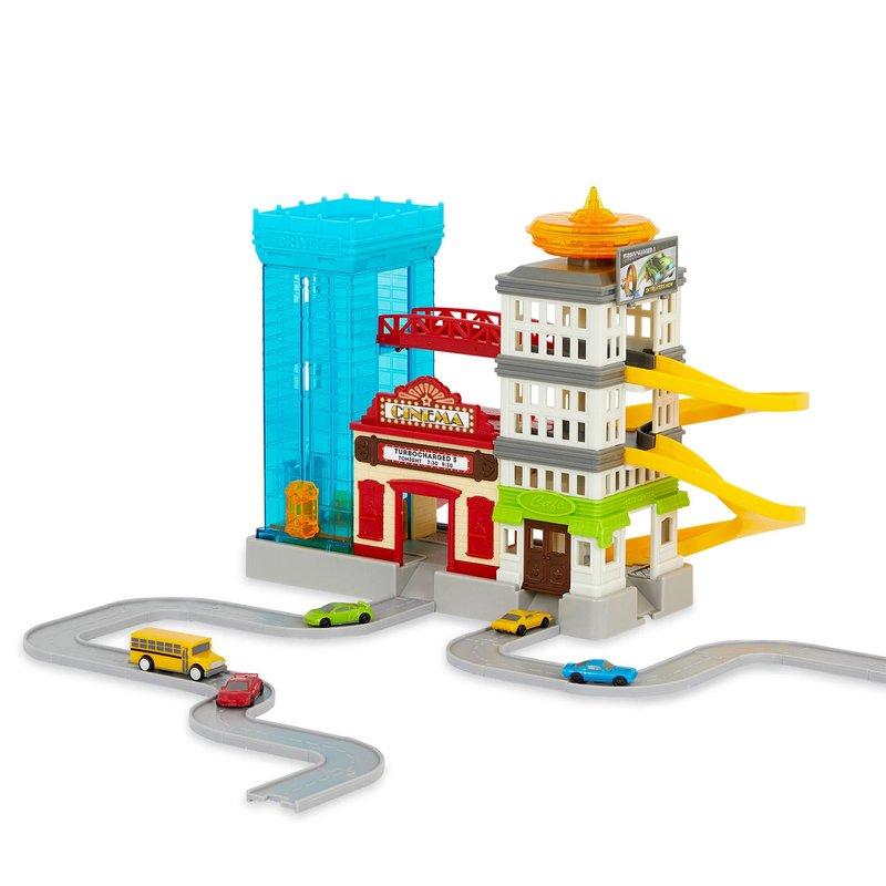 - Large Toy Car Playset: City-themed Pocket Series playset with buildings, tracks, ramps, elevators, and more!