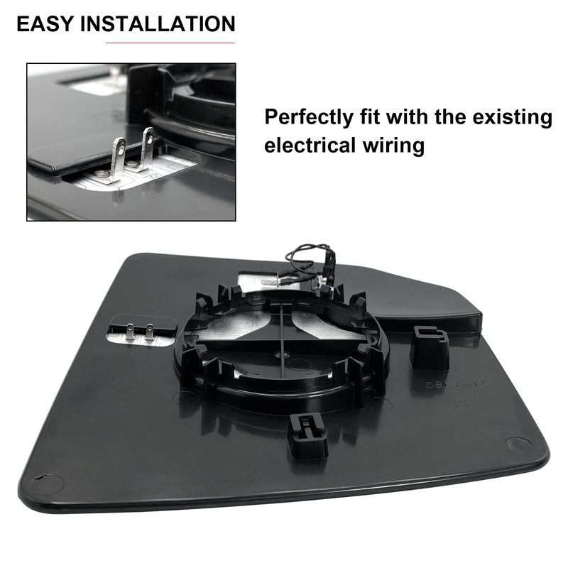 Identical mounting point with factory mirror. Perfectly fit with the existing electrical wiring. You can finish the installation in a few minutes.