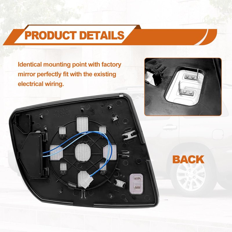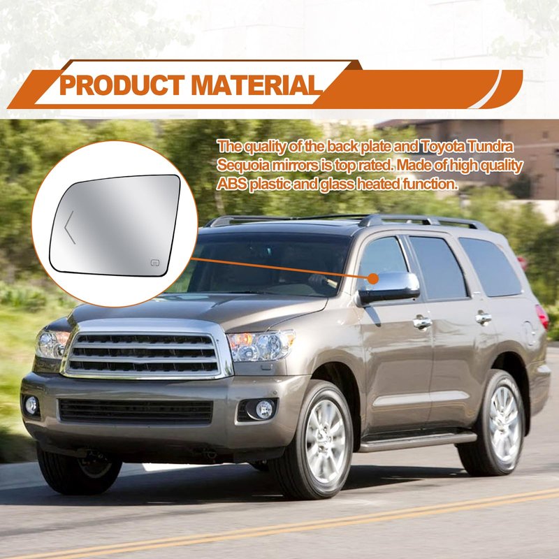 - 【COMPATIBILITY】The passenger side mirror glass replacement for 2008 2009 2010 2011 2012 2013 2014 2015 2016 2017 Toyota Sequoia 2007-2020 Toyota Tundra. Please check if your vehicle information matches the product model before buying. This mirror come with the turn signal arrow indicator.