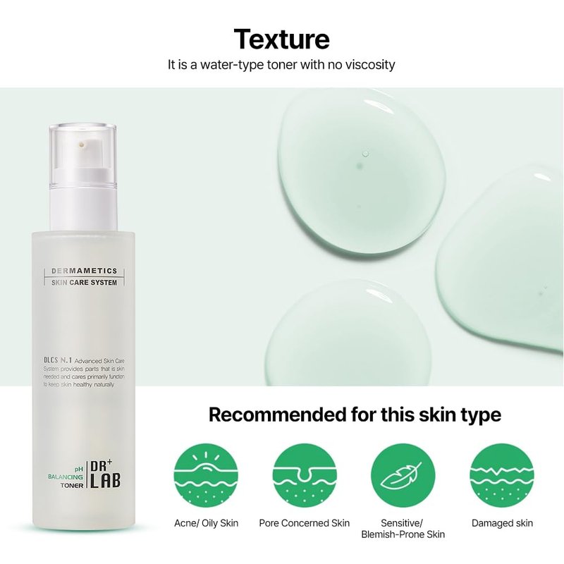 DR+LAB pH Balancing Toner 5.07 fl oz /150ml Moisturizing Oil pH Level Balance Pore Tightening for Oily and Acne Skin Korean Skincare