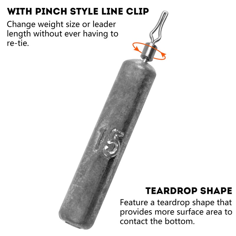 - Slender Body: Slender weights design makes for quiet entry when casting. The weight is dropped vertically to the bottom in the rocks and the bait is lightly shaken to attract attention.
