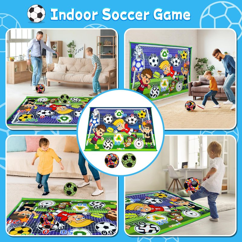 - Gift Choice for Boys: The soccer game set is suitable for indoor, backyard, garden, lawn, beach and anywhere can hang the soccer goal mat, perfect for party, family activity and practice. An ideal gift for kids and toddlers who love playing soccer