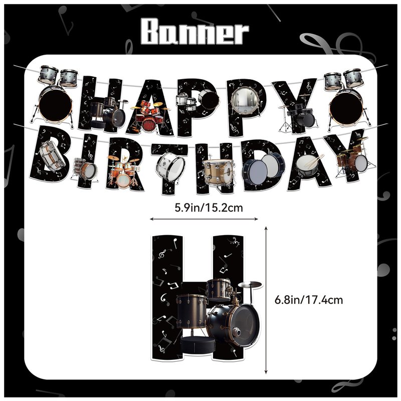 - Premium Material: Drums happy birthday banner and cake decorations are made of thick cardboard, drums balloons are made of natural latex, safe and sturdy, not easy to break or fold, safe and reliable materials allow us to enjoy the joy brought by the party with peace of mind.