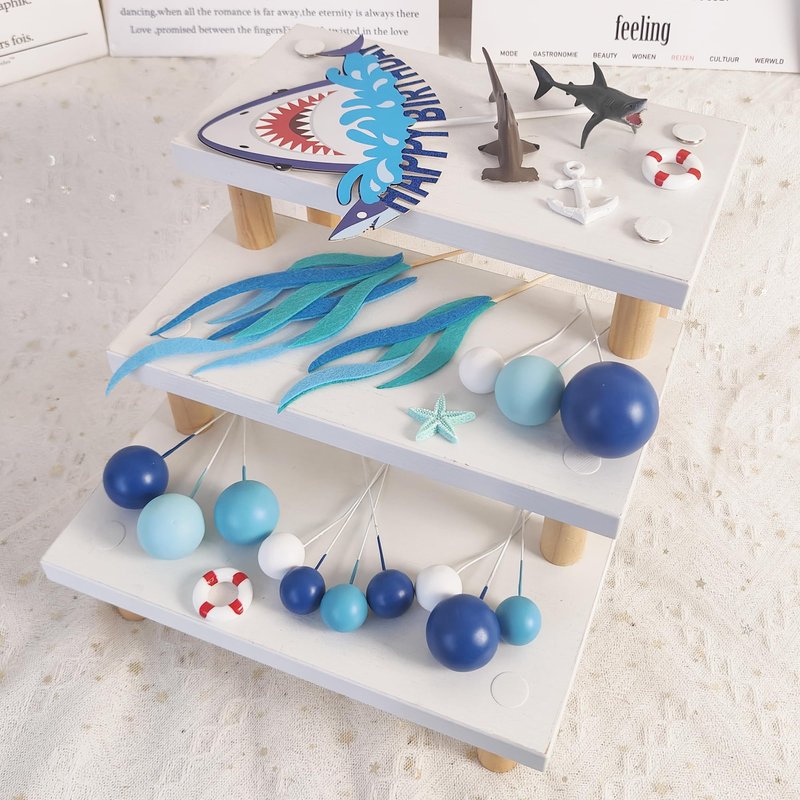 • 【Unique design】Sharks, seaweeds and balls cake toppers make your cake look cool. Specially designed for people who love shark and deep sea. Happy birthday!