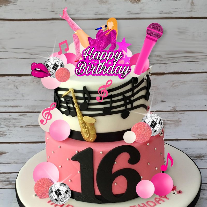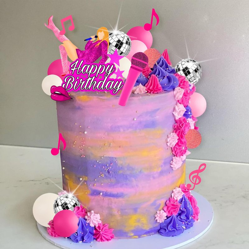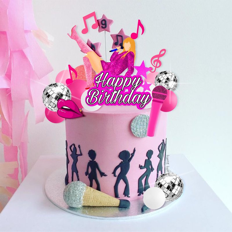 - Package Included: 1 x birthday cake topper ,1 x microphone cake topper , 1 x lip cake topper, 4 x musical note cake toppers, 3 x Singing girl cake toppers, 16 x balls.