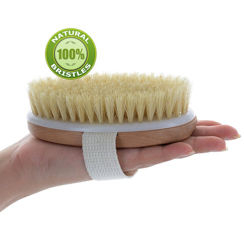 - NATURAL&ECO-FRIENDLY materials give you an at home SPA experience. The Angel Kiss dry brushing body brush is made of the finest materials. The natural boar bristles are firm and effective to exfoliate and soften skin; the handle is made of smooth polished real wood, oval shaped and fits in your palm for better control; cotton strap offers comfortable and easy grip.