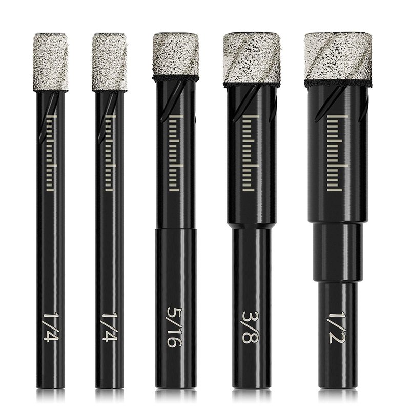 - Add Versatility to Your Tool: 5 Pieces of Dry Diamond Core Drill Bits Kit for drilling holes diameter of 1/4 inch(6mm), 5/16inch (8mm), 3/8inch (10mm) and 1/2inch (12mm);