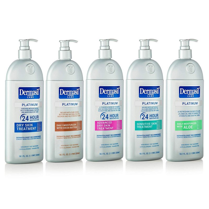 - PROTECTS AND SOFTENS SKIN: 14.5 ounces pack of 2 Dermasil 24-Hour Moisturizing Lotion is fragrance-free and starts working immediately after applying to hydrate and soothe sensitive, dry skin. Dermatologist Recommended and Clinically Tested. Our Dermasil Dry Skin Lotions are made from the highest quality ingredients and work together to provide maximum benefits.