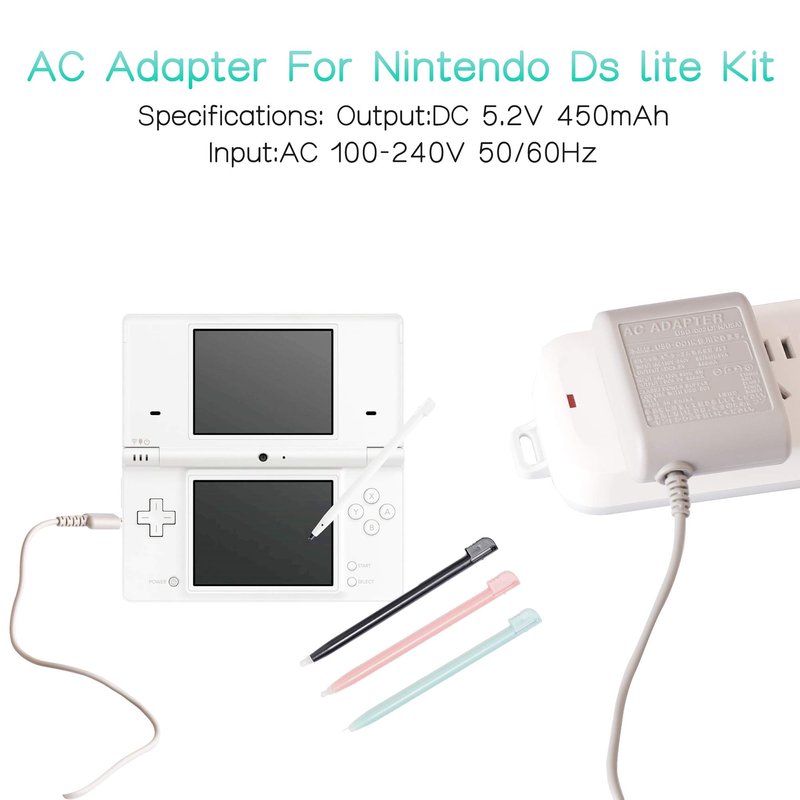 DS Lite Charger Kit, AC Power Adapter Charger and Stylus Pen for Nintendo DS Lite, Wall Travel Charger Power Cord Charging Cable 5.2V 450mA for NDSL