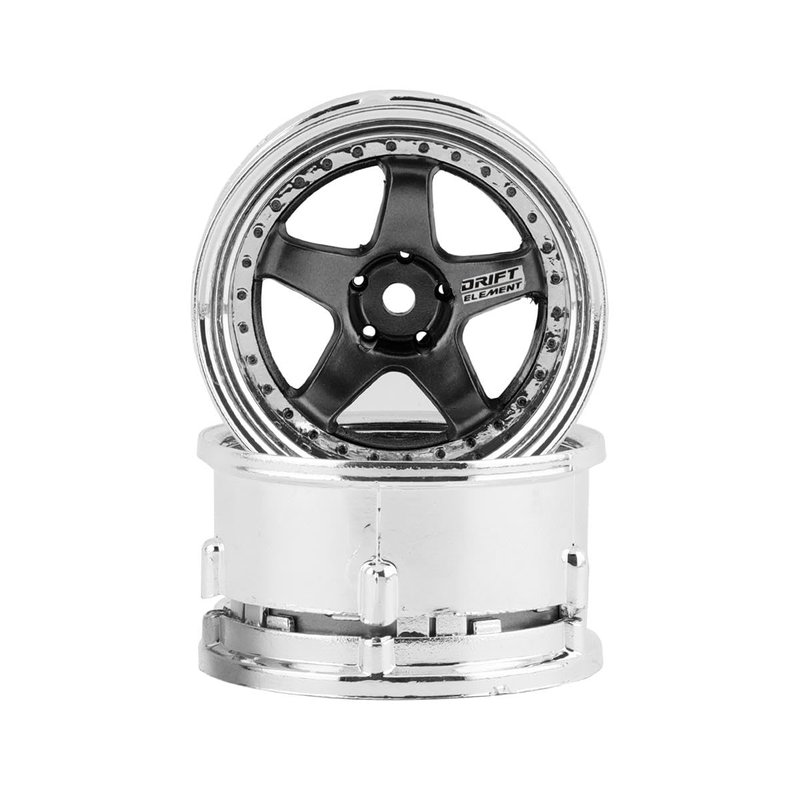 DS Racing Drift Element 1/10 RC Car Drift Rims Wheels, 2PCS Set, 5-Spoke, Adjustable Offset, Fits Yokomo YD MD RD, MST RMX, Reve D RDX, Redcat RDS, HPI, Tamiya TT & More (Gunmetal w/Chrome Lip)