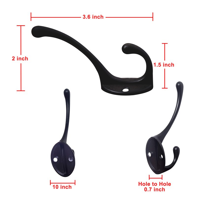 - 5. Made in metal zinc alloy, Black coat hooks hardware. Package: 10 wall mounted Hooks, 20 Mounting Screws