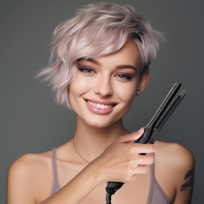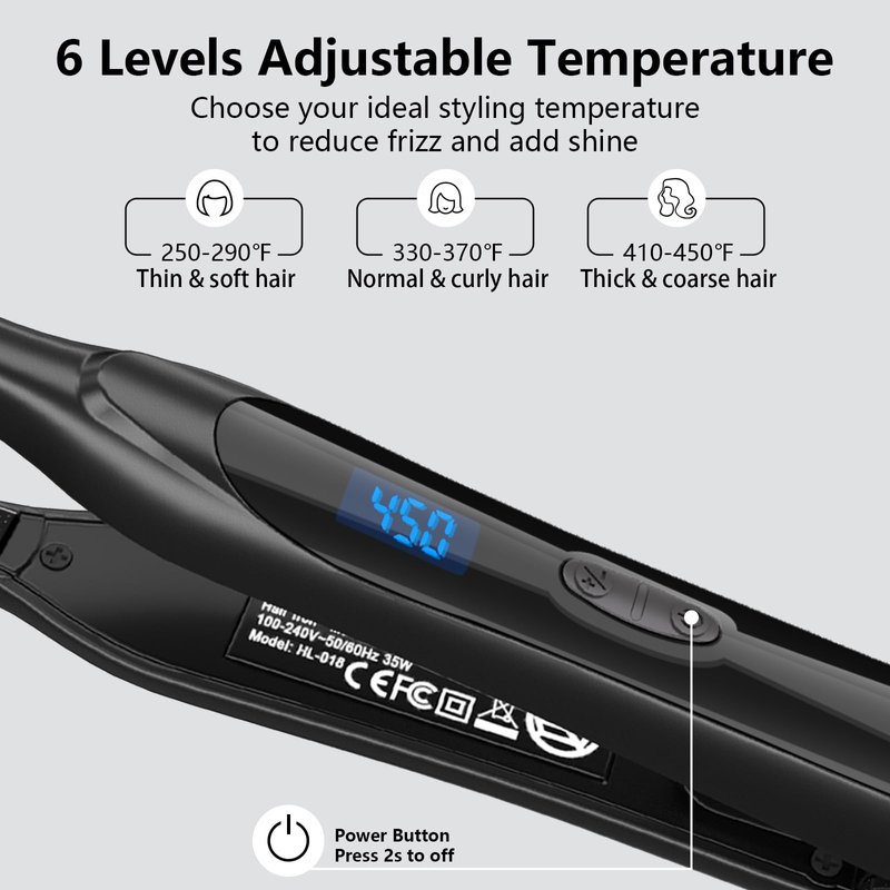 DSHOW Pencil Flat Iron, 3/10" Small Flat Irons for Short Hair, Pixie Cut and Bangs,Tourmaline Ceramic Mini Hair Straightener for Edges with Adjustable Temperature, Auto Shut Off (Black)