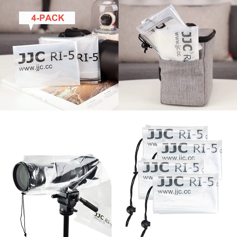 DSLR Camera Rain Cover JJC Rain Coat Sleeve Protector for Canon Nikon Fujifilm Sony Olympus Panasonic Tamron Sigma with a Lens up to 18" PE Material Totally See-Through -4 Pack