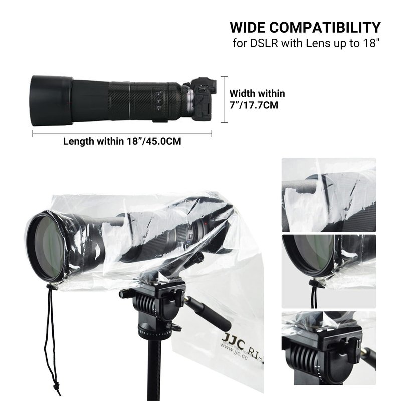 - Compatibility: The camera rain cover is designed for DSLR camera with a lens up to 18" long & 7" wide for Canon Nikon Fujifilm Sony Olympus Panasonic Tamron Sigma