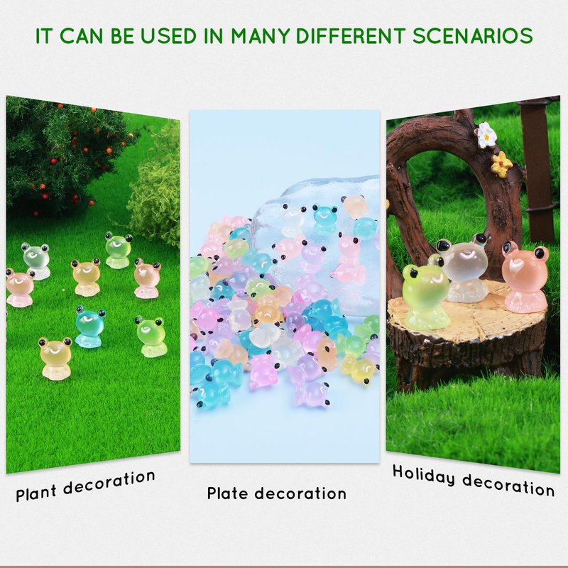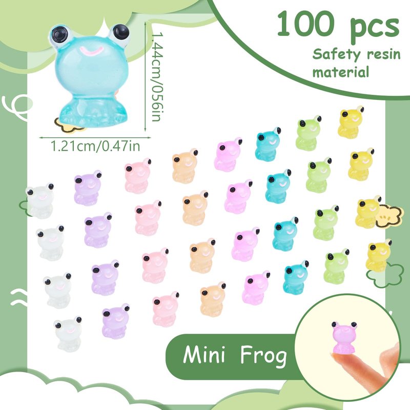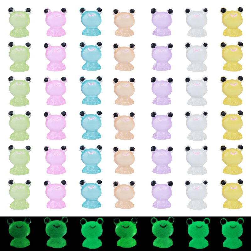 dsooldre 100 Pcs Luminous Mini Resin Frogs Miniature Frogs Figurines Tiny Frog Decor for Fairy Garden, Dollhouse and Landscape Accessories Christmas Birthday Party Decorations Gorgeous Party.