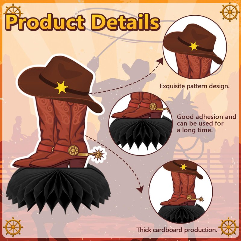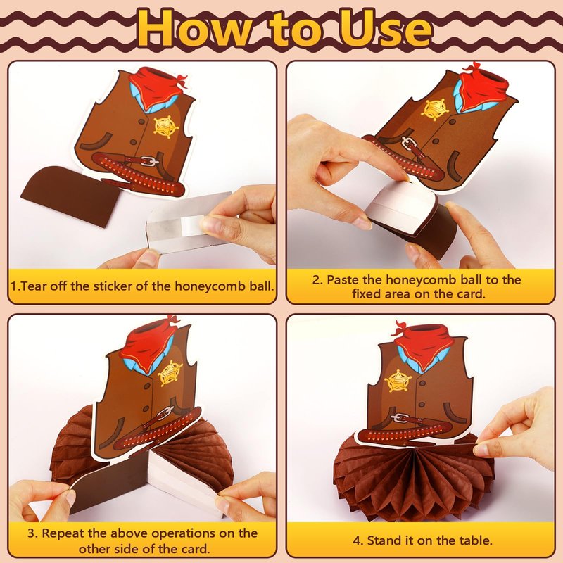 - Easy Installation: The western themed party decorations are extremely simple to install, just tear off the double-sided adhesive tape on the honeycomb and stick honeycomb on the card to complete the installation, saving time and effort. Let you have exquisite cowboy party decorations quickly without complicated steps, and enjoy the fun and sense of accomplishment of cowboy birthday party decorations more easily