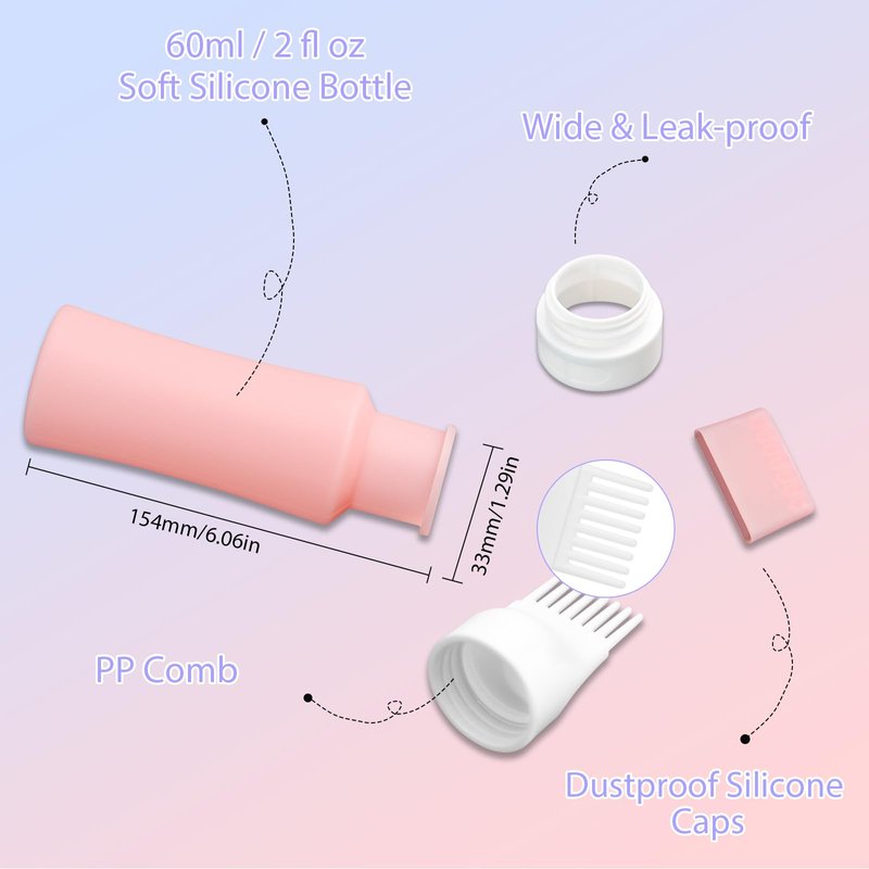 - MULTITUDE OF APPLICATIONS: Leak-proof hair oil bottle idea for pouring essential oils or shampoo, hair color for use. Silicone hair scalp massager can be used for deep cleaning and massaging your head, or for brushing your hair and pet play.