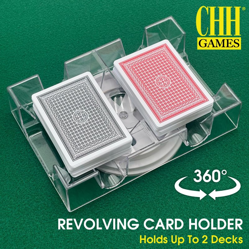 - 🃏 Size of Playing Card Holder Tray: The canasta playing cards holder is 7.08 inches long. The table card holder stand is 4.84 inches wide and the height is about 2 inches. With transparent design of jumbo playing cards holder you can see the cards clearly. These kids card holders for playing cards will be right choice for you as this spinning card display can reduce the risk of missing card while playing various card games.
