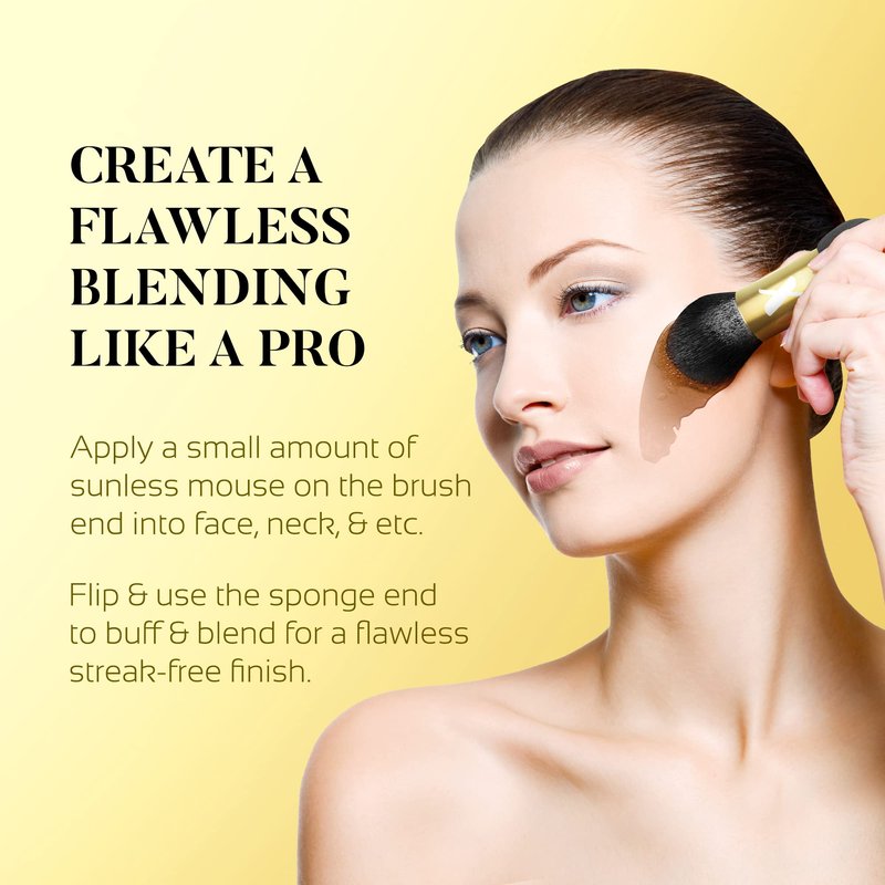 - 2-in-1 Tool for Self Tanning - Achieve the perfect sun-kissed look with our dual-head blending brush and sponge. Like a liquid foundation brush, this tanning brush blends evenly and quickly. So, you can get a flawless fake tan in no time.
