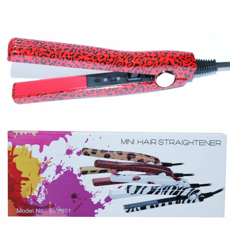 Mini Hair Straightener, Mini Flat Iron, Dual Volt Mini Flat Iron, With Pouch Bag, Travel Size Mini Flat Iron, Dual Volt Mini Hair Straightener, Leopard Print Flat Iron, Leopard Print Hair Straightener, Red Leopard Flat Iron, Red Leopard Hair Straightener
