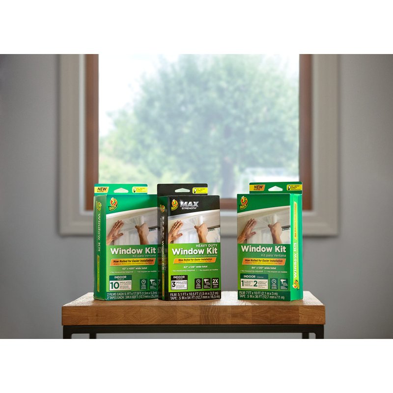 - Kit includes 3, 62" x 210" rolls of Max Strength shrink film and 3, 0.5" x 54' foot rolls of tape; Can insulate up to 15 standard sized 3' x 5' windows