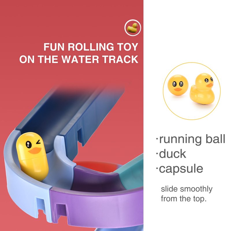 Bath Toys for Toddlers Age 3+ Still trying to find ways to entice your kids to take a bath? With this bathtub bath toy, kids can indulge their imagination and creativity by assembling different bath tracks on their own or with the assistance of their parents, sliding the little ball down the water slide, and letting it splash around in the bathtub again and again! Parents can also enjoy themselves and spend a happy bath time together.