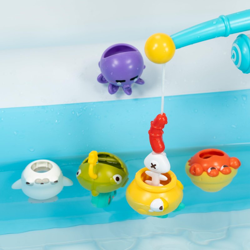 Dive into an imaginative underwater adventure with this Fishing Fun Set Bath Toy for Kids! This delightful 8-piece set is designed to spark creativity and engage young minds during bath time. The set includes a fishing rod, fish characters with expressive faces, and other aquatic-themed pieces that can be easily attached or detached using the magnetic ends. Watch as your little one reels in their catch, creating endless stories and giggles. Made from durable, child-safe materials, this toy set promises hours of splashing fun while promoting hand-eye coordination and problem-solving skills. Compact and portable, it's the perfect companion for bath time or travel. Bring the joy of fishing indoors and create cherished memories with this engaging and educational toy set.
