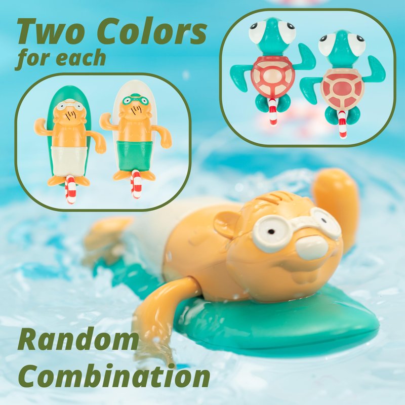 DUCKBOXX XX Pull-String Wind-up Swimming Beach Buddy Bath Toys, No Battery Mold-Free Anti-Rust Interactive Montessori Toy for Kids (Turtle & Beaver -- 2pcs)