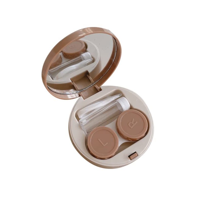 - Unisex Design: Solid white and khaki color contact lens case with push lock closure for both men and women.