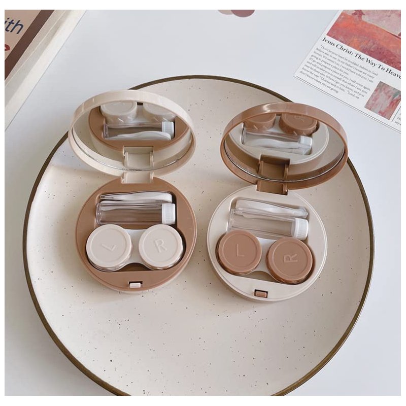 Duehut HLLMX 2 PCS Contact Lens Case Travel Case Holder Storage Box Portable Contact Lens Container Soak Kit for Travel&Home (White,Khaki)