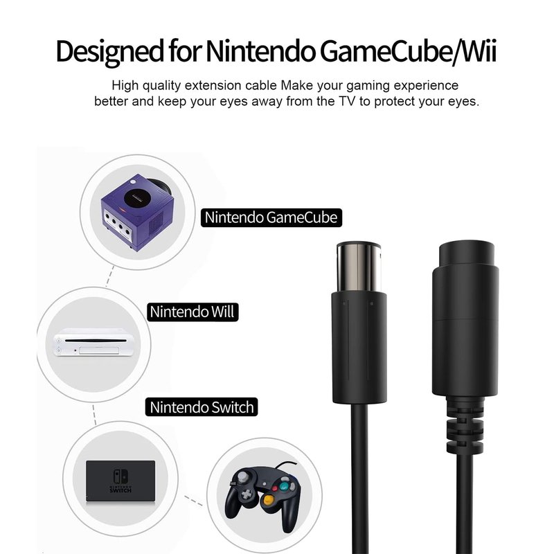 - 【DUEYAGO extension cable】: the extension cable of Nintendo Gamecube and Wii classic controller. If you are often limited by distance, the controller extension cable will be your best choice. The length is 2M/6.6 feet.