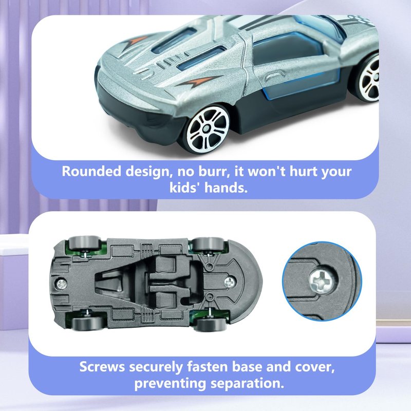 - 【Easy to Play and Safe】: The wheels of these race cars roll smoothly for push-around play. Designed with smooth surfaces and curved corners, they are safe for children's hands. The secure construction ensures that the metal case remains firmly attached to the bottom plate, preventing the cars from coming apart during playtime.